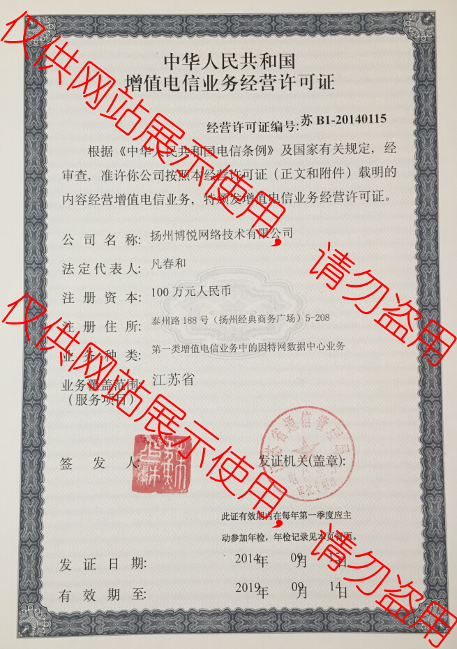 增值電信業(yè)務(wù)經(jīng)營許可證(IDC)